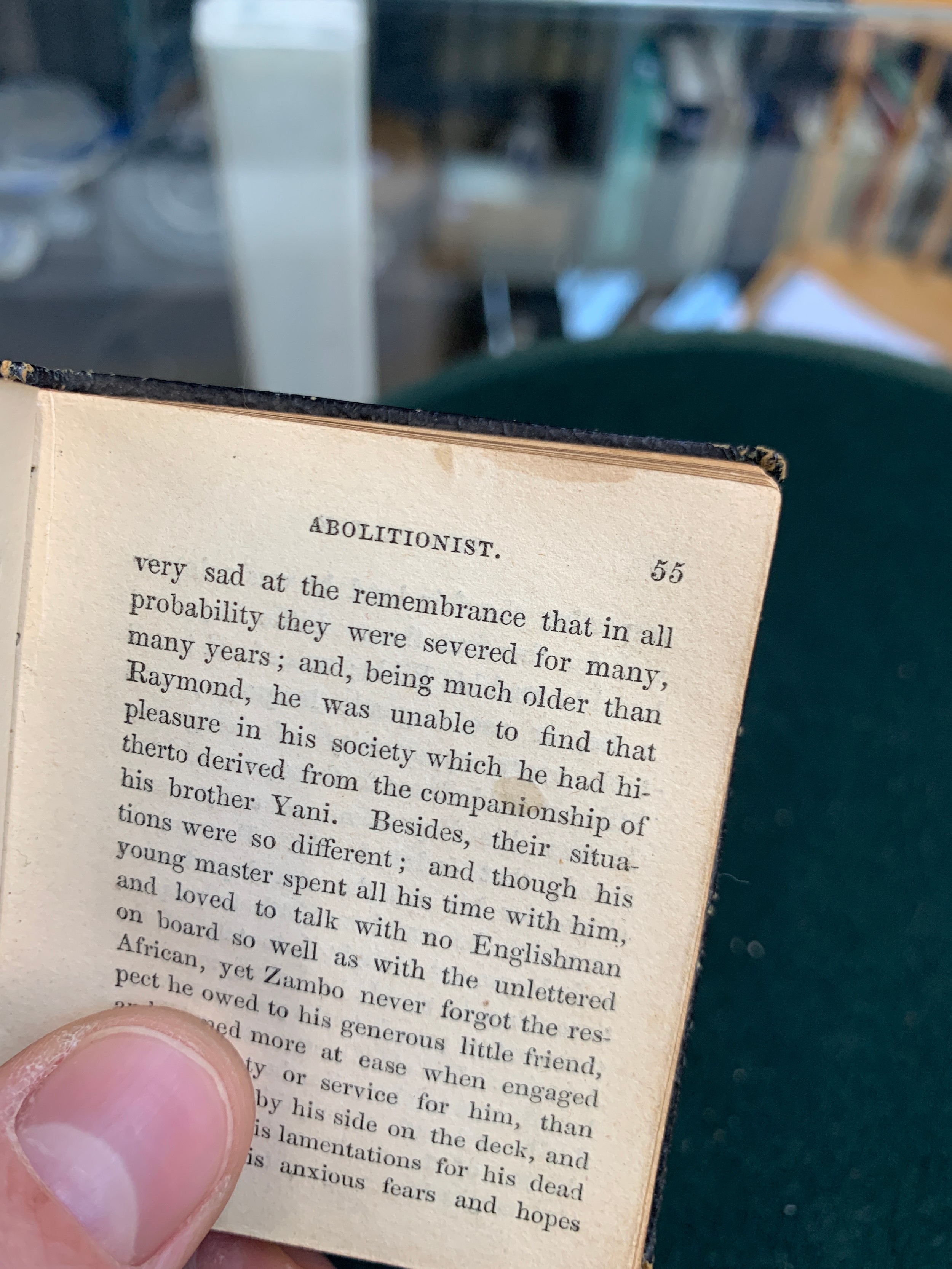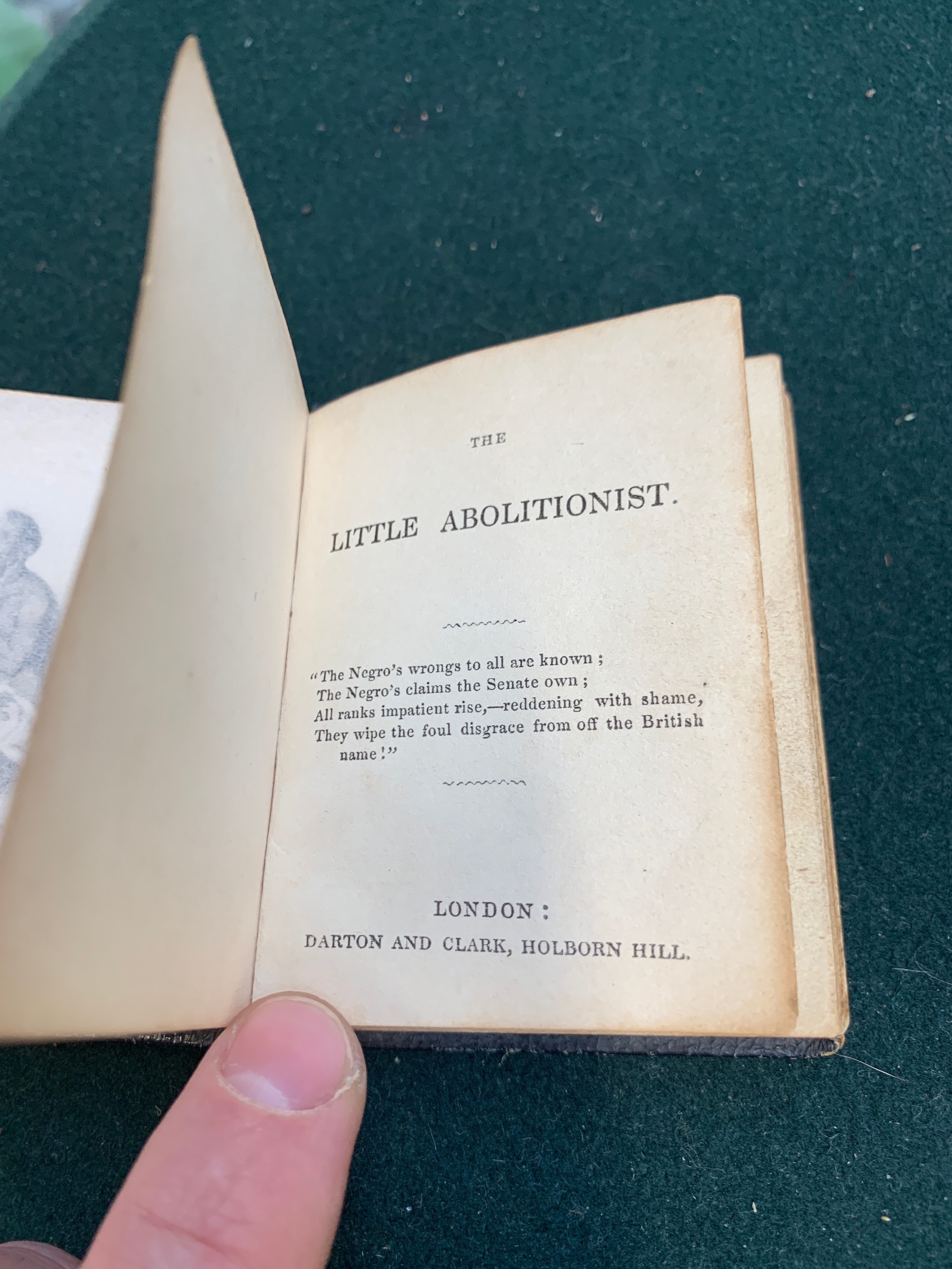 SLAVERY: ABOLITIONIST INTEREST. A very rare miniature book. 'The Little Abolitionist; or Negroe's Friend', Darton and Clark, Holborn Hill. We believe about 1840. There is a copy in The Morgan Library on Madison Avenue, NYC. Locating another copy has been difficult.